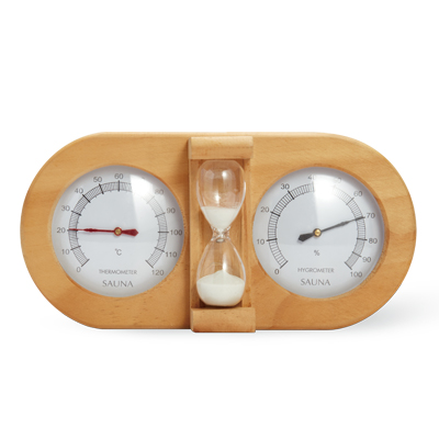 楕円形3in1サウナ温度計 – 15分砂時計&湿度計付き